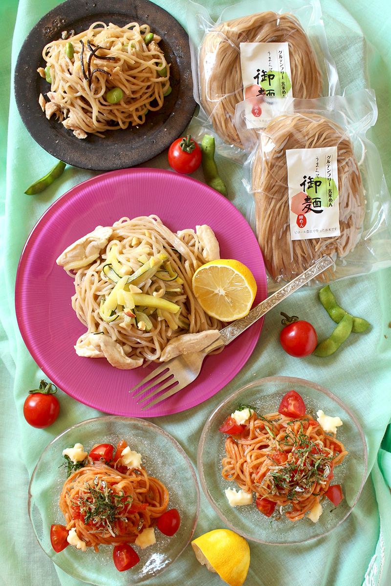 弱アルカリの高カルシウム・高ミネラル玄米を使用したパスタ麺です。
